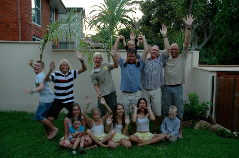 (Photo: Ross, Dickon and I, and our offspring – 2006)